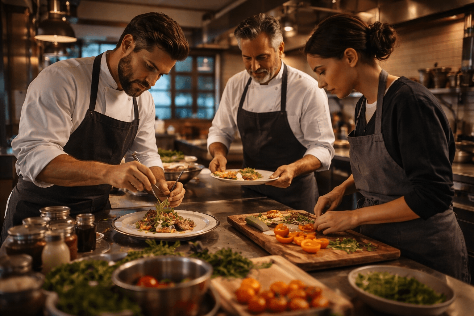 At certain hours, light spills across the counters as if it remembers something. Pots breathe. Knives wait. The air carries traces of distant places—salt, smoke, citrus, something sweet you can’t quite name. Chefs arrive like passing weather: they stay for a while, leave something behind, and disappear—but not before teaching what they know.
